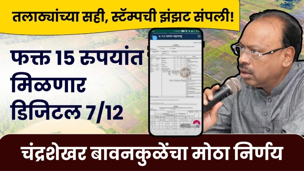 Digital 7/12: महाराष्ट्रातील लाखो शेतकरी आणि नागरिकांना वर्षानुवर्षे त्रास देणाऱ्या सातबाऱ्याच्या प्रक्रियेत आता एक ऐतिहासिक बदल झाला असल्याचं बघायला मिळत आहे. अनेकदा या सातबाऱ्यासाठी तलाठी कार्यालयात रांगेत उभं राहणं, एखादी सही किंवा शिक्क्यासाठी विनंती करत फिरणं, कधी कधी सातबारा उतारा मिळवण्यासाठी कितीतरी वेळ आणि पैसाही खर्च करणं, हे चित्र आता कायमचं बदलणार आहे. महसूल विभागाने घेतलेला हा निर्णय म्हणजे खरंच एक डिजिटल क्रांतीची सुरुवात आहे असं म्हणणं चुकीचं ठरणार नाही. महसूल मंत्री चंद्रशेखर बावनकुळे यांनी जारी केलेल्या परिपत्रकामुळे आता डिजिटल 7/12 (Digital 7/12 Download), 8-अ आणि फेरफार उतारे संपूर्ण राज्यभर कायदेशीरदृष्ट्या वैध ठरणार आहेत. या निर्णयाने नागरिकांची आणि शेतकऱ्यांची सुद्धा अनेक कामे सोपी होणार आहेत.
