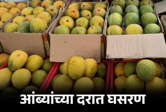गेल्या आठवड्यापर्यंत ८०० ते १२०० रुपये डझन मिळणारा हापूस आंबा आता निम्म्या दराने मिळत आहे. ४०० ते ५०० रुपये डझनापर्यंत भाव खाली आल्याने सामान्य ग्राहकांचा कल आंबाखरेदीसाठी वाढला आहे. हापूसबरोबर, पायरी आणि इतर स्थानिक जार्तीच्या आंब्यांच्या दरातही घसरण झाली आहे.
