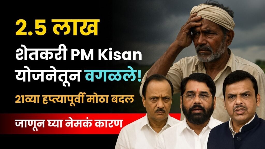 याच सुधारणेमुळे 21व्या हप्त्यासाठी पात्र असलेल्या शेतकऱ्यांची संख्या कमी झाली असून, तब्बल 2.5 (PM Kisan 2.5 Lakh Farmers Removed) लाख शेतकऱ्यांना या योजनेतून वगळण्यात आलं आहे.