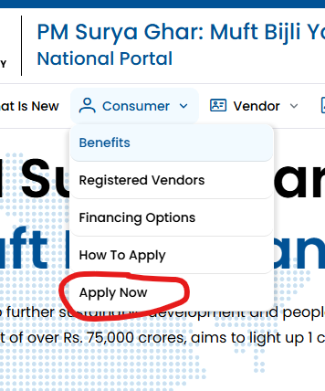 1. नोंदणी: अधिकृत वेबसाईट pmsuryaghar.gov.in वर जा आणि ‘Apply for Rooftop Solar’ वर क्लिक करा.